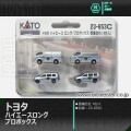レイアウトを引き立てるNゲージサイズのミニカーに、事業用車として活躍するハイエースとプロボックスが登場です。平成16年(2004)にフルモデルチェンジし、現在も様々な場所で見ることができる「5代目」ハイエースと、平成14年(2002)に登場以降12年間にわたって改良を重ねながら生産された初代プロボックスは、事業用・商用として全国各地で見られる乗用車です。
