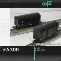 戦後初の新製鉄製有蓋車で15トン積みの2軸車のテム100の走行装置を二段リンク式とし、最高運転速度を75km/hに向上した車両です。昭和38年(1963)までに850両が製造されました。、主な積荷である生石灰の水との科学反応による発熱に対応するため、漏水を防ぐ構造にするとともに、床板・側板・屋根まですべて鋼板製とされているのが特徴です。積荷のバラ積みに考慮して内側を平滑にするため、内張りはなく側柱を外側に配して平鋼板を使用しています。