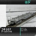 コキ107はコキ106を改良した汎用コンテナ車として落成し、ブレーキ装置をコキ200と同様のユニットブレーキ方式に変更し、手ブレーキがデッキ手スリにあることが特徴です。台枠はコキ106と同じグレーの塗装色をまとっています。