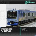 Y500系は平成16年(2004)のみなとみらい線開業に合わせて投入された車両で、外観は東急5000系列とほぼ同一ながら、「ヨコハマの海」の青と、「躍動感のある都市」の黄色のグラデーション、前頭部は「伸び行く都市」をイメージしたメタリックブルーの塗色をまとっています。