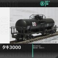タキ3000は、ガソリン輸送専用の30t積みタンク貨車で、昭和22年(1947)から1,594両が製造されました。その多くは私有貨車で石油会社などが所有しており、全国各地のガソリン輸送で活躍しましたが、老朽化に伴い平成14年(2002)までに全廃されました。
