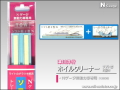 Nゲージ無動力車専用ホイルクリーナーです。専用フエルトを使用する事で今までクリーニングし難くかったトレーラー車・中間車・客車等の車輪を簡単、綺麗に磨く事ができます。クリーニングする事で集電効果が上がり、前照灯や室内照明ユニットを取付けた車輛の照明のチラツキを解消します。また、付属のレールクリーナーはレール表面に軽く押しつけて拭き取るだけで汚れを取り除く事ができます。どちらの製品も使用時にクリーナー液は不要です。専用フエルトが汚れましたら別売り「ソフト君2型用専用スペアフエルトセット」をお買い求め下さい。動力車には「12503/ソフト君N」をお買い求め下さい。