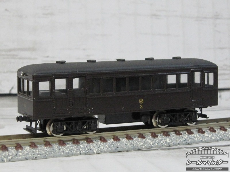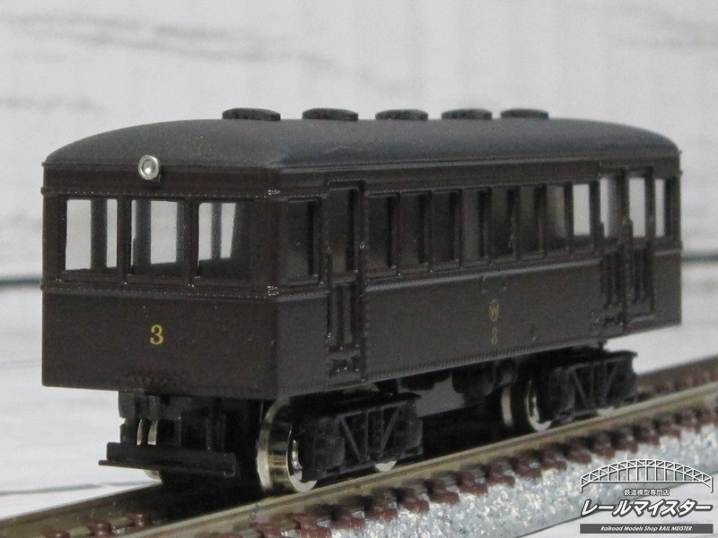 江若鉄道キニ3 キットメーカー名kitcheN 動力ユニット鉄道コレクション動力を採用 カプラー両側ともダミーカプラー コメント 戦前の江若鉄道の車両です。 落ち着いた茶色の車体と金文字の標記の車両です。 販売価格(税込)49,060