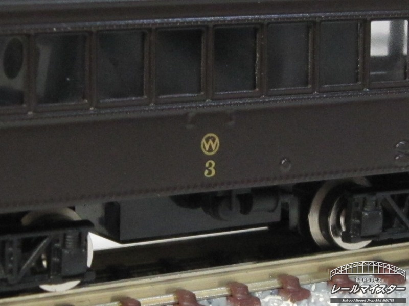 落ち着いた茶色の車体と金文字の標記の車両です。